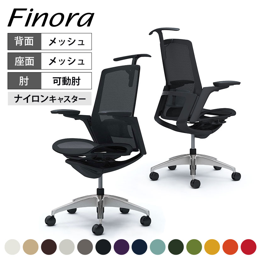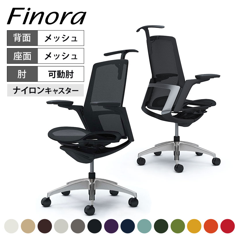 オカムラ フィノラ Finora チェア アジャストアーム(可動肘) ハイバック メッシュ座 ブラックパネル ポリッシュ脚 ブラックボディ ハンガー付き ランバー付き C786ASチェア アームレスト 可動 パソコンチェア デスクチェア ワークチェア メッシュチェア