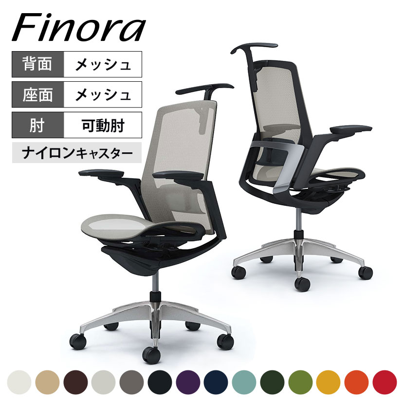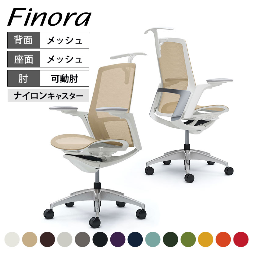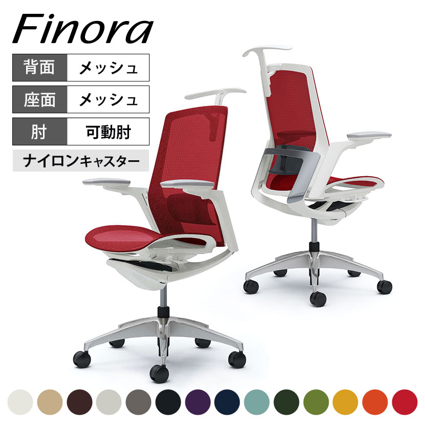 オカムラ フィノラ Finora チェア アジャストアーム(可動肘) ハイバック メッシュ座 メッキパネル ポリッシュ脚 ホワイトボディ ハンガー付き ランバー付き C786BZチェア アームレスト 可動 パソコンチェア デスクチェア ワークチェア メッシュチェア