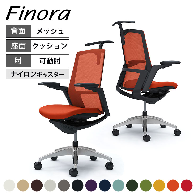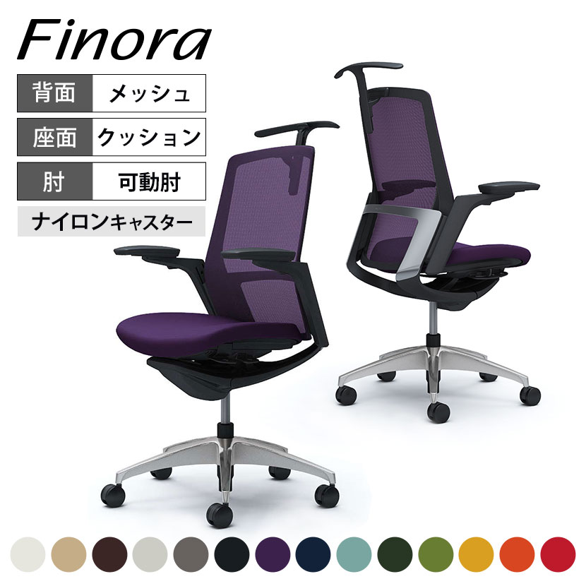 オカムラ フィノラ Finora チェア アジャストアーム(可動肘) ハイバック クッション座 メッキパネル ポリッシュ脚 ブラックボディ ハンガー付き ランバー無し C788BRチェア アームレスト 可動 パソコンチェア デスクチェア ワークチェア メッシュチェア