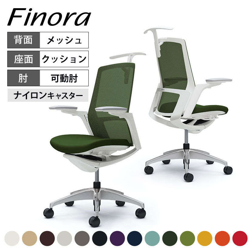 オカムラ フィノラ Finora チェア アジャストアーム(可動肘) ハイバック クッション座 ホワイトパネル ポリッシュ脚 ホワイトボディ ハンガー付き ランバー無し C788CWチェア アームレスト 可動 パソコンチェア デスクチェア ワークチェア メッシュチェア