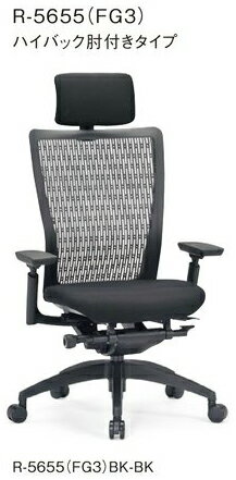 R-5655チェア メッシュチェア 【 ハイバック 】 【 可動肘 肘付き 】 【 ヘッドレスト付 】 【 樹脂脚 】 【 背樹脂メッシュ + 座面 防汚布張り 黒色 】 事務用回転椅子 オフィスチェア パソコンチェア OAチェア PCチェア デスク用チェア 高級チェア