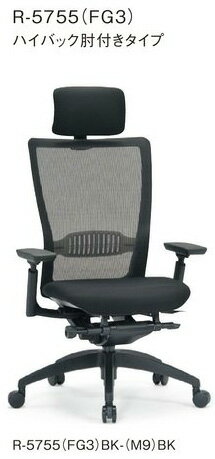 R-5755チェア メッシュチェア 【 ハイバック 】 【 可動肘 肘付き 】 【 ランバーサポート付 】 【 背面メッシュ 】 【 樹脂脚 】 【 布張り 黒色 】 事務用回転椅子