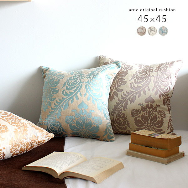 クッション 45×45 正方形 45 かわいい ダマスク おしゃれ 中身付き フェザー 四角 アンティーク シャビーシック エレガント 日本製 中東 ヨーロピアン レトロ 女性 ダマスク柄 arne アーネ モダン インテリア カフェ サロン 【45×45cm 中綿付き】