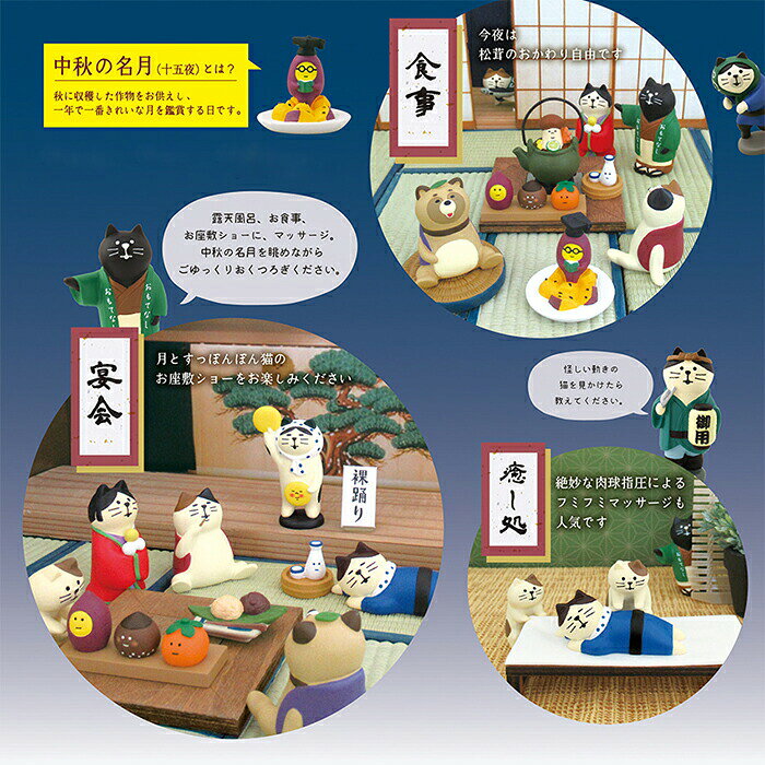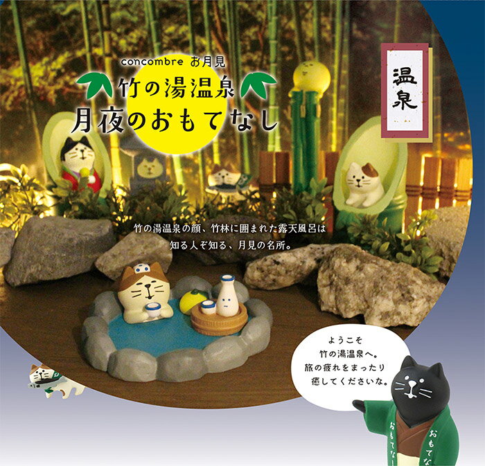 コンコンブル 竹の湯温泉 月夜のおもてなし ほぐされ猫 月見 お月見 飾り 玄関 コンパクト 置物 ミニチュア デコレ DECOLE concombre 新作 2020