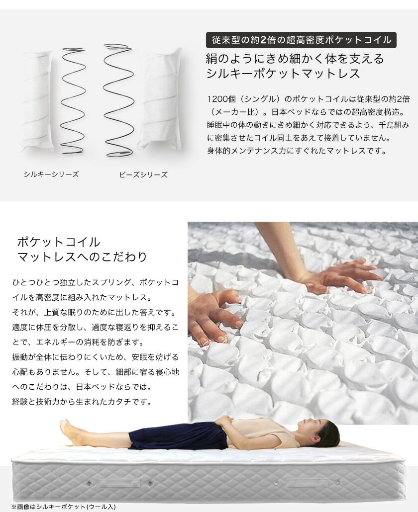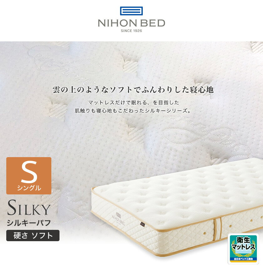 日本ベッド マットレス シルキーパフ シングル 柔らかめ ソフト ポケットコイルマットレス 国産 メーカー保証付 抗菌防臭 体圧分散 理想の寝姿勢 エッジサポート 正規販売店 送料無料